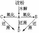 例100.如图所示.淀粉水解可产生某有机化合物A,A在不同的氧化剂作用下,可以生成B(C6H12O7)或C(C6H10O8),B和C都不能发生银镜反应。A、B、C都可以被强还原剂还原成为D(C6H14O6)。已知,相关物质被氧化由易到易依次是:
