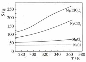 (4)Mg(ClO3)2在农业上可用作脱叶剂、催熟剂,可采用复分解反应制备: MgCl2+2NaClO3===Mg(ClO3)2+2NaCl已知四种化合物的溶解度(S)随温度(T)变化曲线如上图所示:将反应物按化学反应方程式计量数比混合制备Mg(ClO3)2.简述可制备Mg(ClO3)2的原因: 。