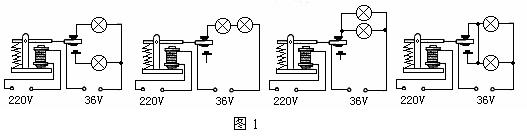 3、小利同学观察到学校楼道里的消防应急灯,平时灯是熄的,一旦停电,两盏标有“36V”灯泡就会正常发光。图1所示是小利设计的四个电路,其中可以起到消防应急灯作用的电路是( )