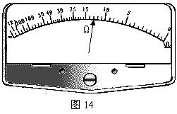 ⑶有一种仪器叫欧姆表,可以直接测量电阻的大小,如图14是欧姆表的表面,其示数为________。