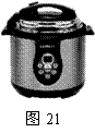 困扰消费者多年的安全隐患;省时省电。如图21是小胖家中的电压力锅及铭牌: