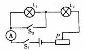 3(09蚌埠二中)如图所示电路,灯L1、L2的额定电压分别为2V、10V,S1闭合、S2断开、滑动变阻器滑片置于中点位置时,两灯均正常发光。S2闭合后,移动变阻器滑片使L2仍正常发光时,下列关于滑片位置和电流表示数的说法正确的是]A.滑片在中点右侧,电流表示数变小