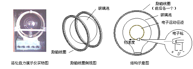 7、洛伦兹力演示仪是由励磁线圈(也叫亥姆霍兹线圈)、洛伦兹力管和电源控制部分组成的。励磁线圈是一对彼此平行的共轴串联的圆形线圈,它能够在两线圈之间产生匀强磁场。洛伦兹力管的圆球形玻璃泡内有电子枪,能够连续发射出电子,电子在玻璃泡内运动时,可以显示出电子运动的径迹。其结构如图所示。