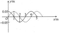 (满分7分)如图所示,实线为简谐波在t时刻的波形图,虚线为波在(t+0.01)s时刻的波形图,若波速为100m/s.