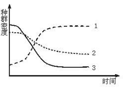 (3)在沼气发酵中,进行着非常复杂的微生物代谢活动。其异化作用方式有,甲:需氧型;乙:厌氧型;丙:兼氧型等三种类型。右面的坐标图中1、2、3条曲线分别表示上述三种类型的微生物在沼气池中数量的消长规律,请指出1、2、3条曲线依次代表甲、乙、丙哪种微生物。 。(3分)