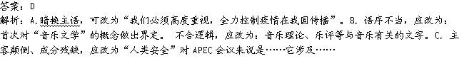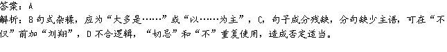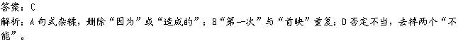 解析:A “逐步”应为“逐渐”;C项 “给予了很高评价”一句残缺主语;D.成分赘余,去掉后面的“导致的”