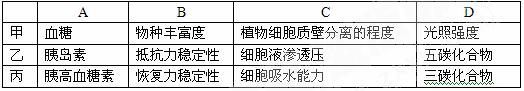 4. 下图中甲、乙、丙三个有关的指标,甲的变化引起乙、丙的变化对应关系不正确的是( )