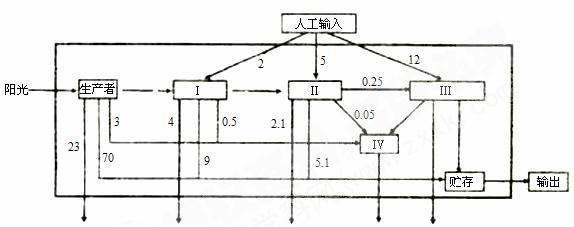 B.由生产者,I、Ⅱ、Ⅲ、Ⅳ构成的食物链中,能量流动是单向的、逐级递减的
