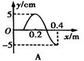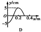 17. 一质点以坐标系原点O为平衡位置沿y轴方向做简谐振动,其振动图像如右图所示,振动形成的简谐横波在介质中沿x轴正向传播,波速为1.0m/s,若质点振动四分之三周期后立即停止,则再经过0.1s后的波形图是( )