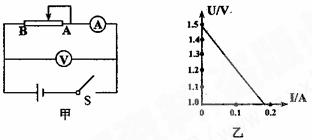 22. (19分) (1) 为了测定一节干电池的电动势和内电阻,某实验小组按图甲所示的电路连好实验电路图,合上开关,电流表和电压表的读数正常,当将滑动变阻器的滑动触头由A端向B端逐渐滑动时,发现电流表的示数逐渐增大,而电压表的示数接近1.5V且几乎不变,直到当滑动触头滑至临近B端时电压表的示数急剧变化,这种情况很难读出电压数值分布均匀的几组不同的电流、电压值,出现上述情况的原因是_________________;改进的办法是_________________________;改进后,测出几组电流、电压的数值,并画出图像如图乙所示,由图像可知,这个电池的电动势E = ____________V,内电阻r =
