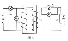 如图6所示的电路中,有一个理想变压器,原线圈匝数为n1,串联一只小灯泡L1,再并联一只电压表V1后接在稳定的交流电源上;副线圈匝数为n2,串联灯泡 L2和变阻器R,L2上并联电压表V2.现在向下移动滑动变阻器R的滑动触头P下列判断正确的是