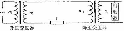 3. (09年山东卷)某小型水电站的电能输送示意图如下。发电机的输出电压为200V,输电线总电阻为r,升压变压器原副线圈匝数分别为n,n2。降压变压器原副线匝数分别为n3、n4(变压器均为理想变压器)。要使额定电压为220V的用电器正常工作,则