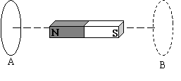 如图1所示,一环形线圈沿条形磁铁的轴线,从磁铁N极的左侧A点运动到磁铁S极的右侧B点,A、B两点关于磁铁的中心对称,则在此过程中,穿过环形线圈的磁通量将: