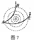 8、图7中的虚线为某电场的等势面,今有两个带电粒子(重力不计),以不同的速度经过电场中的A点后,沿不同的径迹1和2运动,由轨迹可以断定: