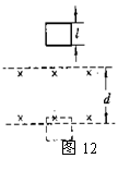 如图12,正方形导线框宽为L,电阻为R,从某一高度竖直落入磁感应强度为B的水平匀强磁场中,磁场宽度为d,且有d >L。线框落入磁场时恰好匀速运动,刚要离开磁场时恰好又匀速运动,则全过程中流过导体横截面的电量绝对值为_____。
