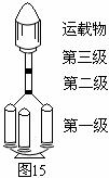 例题18.如图15是多级火箭的示意图,发射时先点燃第一级火箭,燃料燃烧完后,空壳自动脱落,然后下一级火箭开始工作,多级火箭能及时把空壳抛掉,使质量减小,因而能达到很高的速度,可用来发射洲际导弹、人造卫星和宇宙飞船等。试通过计算说明:火箭不是一次把燃气喷完,而是逐渐向后喷气以获得更大反冲速度的道理。(每次喷出的气体相对于火箭的速度是相同的,设火箭的运动方向为