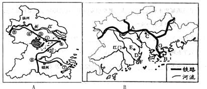 27.下图分别是我国长江三角洲和珠江三角洲经济区示意,读后回答问题。(16分)