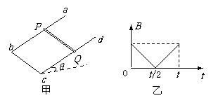 8.如图甲中abcd为导体做成的框架,其平面与水平面成θ角,质量为m的导体棒PQ与ab、cd接触良好,回路的电阻为R,整个装置放于垂直框架平面的变化的磁场中,磁感强度B随时间变化规律如图乙,PQ始终静止,在时间0-t内,PQ受到的摩擦力f的大小变化可能是( )