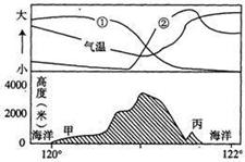 下图为中国某岛屿沿北回归线形剖面图,上部为该地区相关地理事物沿线变化图。回答10-12题。