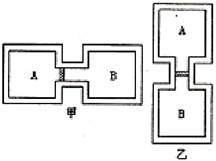 如图甲所示,导热性能良好的容器置于恒温环境中,一可无摩擦自由移动的活塞将容器隔成两密闭空间A和B,两空间充满同种气体(不考虑气体分子间除碰撞外的其他作用力),稳定后VA<VB;现缓慢将容器翻转至如图乙所示,稳定后两边气体体积相同,则此时