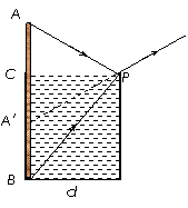 17.某位同学用下面的方法测量某种液体的折射率。如图所示,他在一个烧杯中装满了某种透明液体,紧贴着杯口竖直插入一根直尺AB,眼睛从容器边缘的P处斜向下看去,观察到A经液面反射所成的虚像A′恰好与B经液体折射形成的虚像重合。他读出直尺露出液面的长度AC、没入液体中的长度BC,量出烧杯的直径d。由此求出这种透明液体的折射率为( )