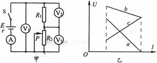 18.在如图甲所示电路中,闭合电键S,当滑动变阻器的滑动触头P向下滑动的过程中,四个理想电表的示数都发生变化。图乙中三条图线分别表示了三个电压表示数随电流表示数变化的情况,以下说法正确的是( )