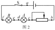 ②某同学按如图2所示的电路图连接元件后,闭合开关S,发现A、B灯都不亮。该同学用多用电表的欧姆挡检查电路的故障。检查前,应将开关S 。(选填“闭合”或“断开”)