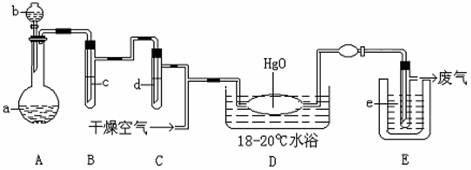 (4)E中的保温瓶中盛有致冷剂,它应是 (在干冰、冰水、液态空气中选择),在E的内管得到的氧化二氯中可能含有杂质是