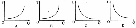 26.一般来说,家庭消费和储蓄的比值(Q=消费/储蓄)随着对未来收入预期(P)、通货膨胀率(T)、社会保障水平(E)、利率(I)的变动而变动。下列曲线图中未能正确反映其变动关系的是