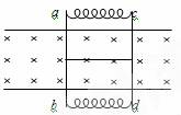 如图所示,两根足够长的固定平行金属光滑导轨位于同一水平面内,导轨上横放着两根相同的导体棒ab、cd与导轨构成矩形回路。导体棒的两端连接着处于压缩状态的两根轻质弹簧,两棒的中间用细线绑住,它们的电阻均为R,回路上其余部分的电阻不计。在导轨平面内两导轨间有一竖直向下的匀强磁场。开始时,导体棒处于静止状态。剪断细线后,导体棒在运动过程中