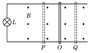 如图所示,接有灯泡L的平行金属导轨水平放置在匀强磁场中,一导体杆与两导轨良好接触并做往复运动,其运动情况与弹簧振子做简谐运动的情况相同。图中O位置对应于弹簧振子的平衡位置,P、Q两位置对应于弹簧振子的最大位移处。若两导轨的电阻不计,则