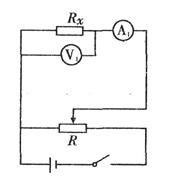 (评分标准:正确选出并在图中画出电流表A1及电压表V1的各得1分,A1采用外接的得1分,滑线变阻器采用分压式接法的得1分。)