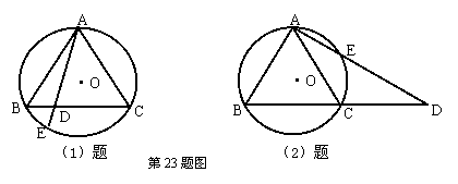23、(1)如图,△ABC内接于⊙O,且AB=AC,⊙O的弦AE交于BC于D.