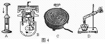 7、在进行如图4所示的实验或有关装置工作时,能量转化由机械能转化为内能的是( )