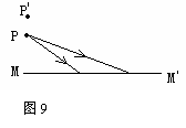 15、⑴(3分)如图9中,MM′是两种介质的分界面,P是一个物点,P′是P的像点。图中画出了由P点射向界面的两条光线,请画出这两条光线进入另一种介质的折射光线。