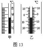 ⑵如图13所示,是两支温度计的一部分,图中温度计是利用_________来工作的,其中表示体温计的是_______图,另外一支温度计的示数是_________。