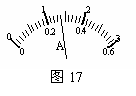 ⑶小胖同学已将前两次实验的数据记入了上表中,第3次实验的电流表指针如图17所示,请将读数填入上表中,并完成表中的有关计算。