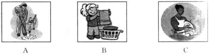 根据所听句子的内容和所提的问题,选择符合题意的图画回答问题,并将答题卡上对应题目所选的选项涂黑。每小题听一遍。