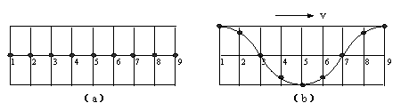 6.一列横波沿直线向右传播,直线上有间距均为L的9个质点,如图(a)所示。t=0时横波到达质点1,质点1开始向下运动,经过时间Δt第一次出现如图(b)所示的波形。则该波的 ( )