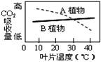 右图表示A、B两种植物在不同温度条件下,光合作用和呼