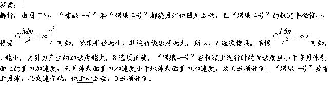 娥一号”卫星在轨运行速度比“嫦娥二号”在轨运行速度大
