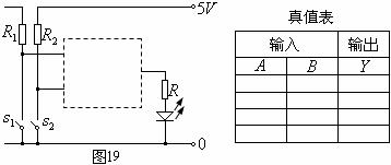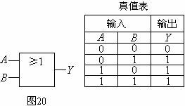 答案:虚线框内的电路应为“或”逻辑门电路,门电路符号和真值表见图20。