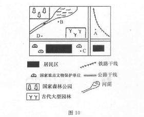 41.(10分)[选修旅游地理]图10是“华北平原某城市平面图”,读图回答下列问