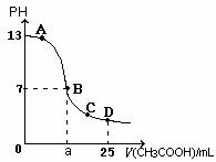 在25mL 0.1mol/L NaOH溶液中逐滴加入0.2mol/L CH3COOH溶液,曲线如图所示,下列有关离子浓度关系的比较,正确的是
