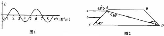 (1)一单色光波在折射率为1.5的介质中传播,某时刻电场横波图象如图1所示,求该光波的频率。