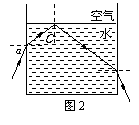 ⑵一束单色光由左侧射入盛有清水的薄壁圆柱形玻璃杯,图2为过轴线的截面图,调整入射角α,使光线恰好在水和空气的界面上发生全反射。已知水的折射率为4/3,求sinα的值。