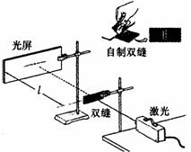 (2010潍坊单科)在观察光的干涉现象的实验中,将两片刀片合在一起,在涂有墨汁的玻璃片上划出不同间隙的双缝;按图所示的方法,让激光束通过自制的双缝