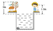 13. (2010烟台一模)一小孩站在宽6m的河边,在他正对面的岸边有一距离河面高度为3m的树,树的正下方河底有一块石头,小孩向河面看去,同时看到树顶和石头两者的像且重合.若小孩的眼睛离河面高为1.5m,如图,河水的折射率为4/3,试估算河水深度.