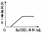 向某混合溶液中滴加Ba(OH)2溶液,Ba(OH)2溶液的体积与生成沉淀的质量关系如右图所示,则该混合溶液可能是