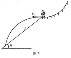 3.在冬奥会自由式滑雪比赛中,运动员在较高的雪坡上滑到某一弧形部位处,沿水平方向飞离斜坡,在空中划过一段抛物线后,再落到雪坡上,如图3所示,若雪坡的倾角为θ,飞出时的速度大小为v0则( )